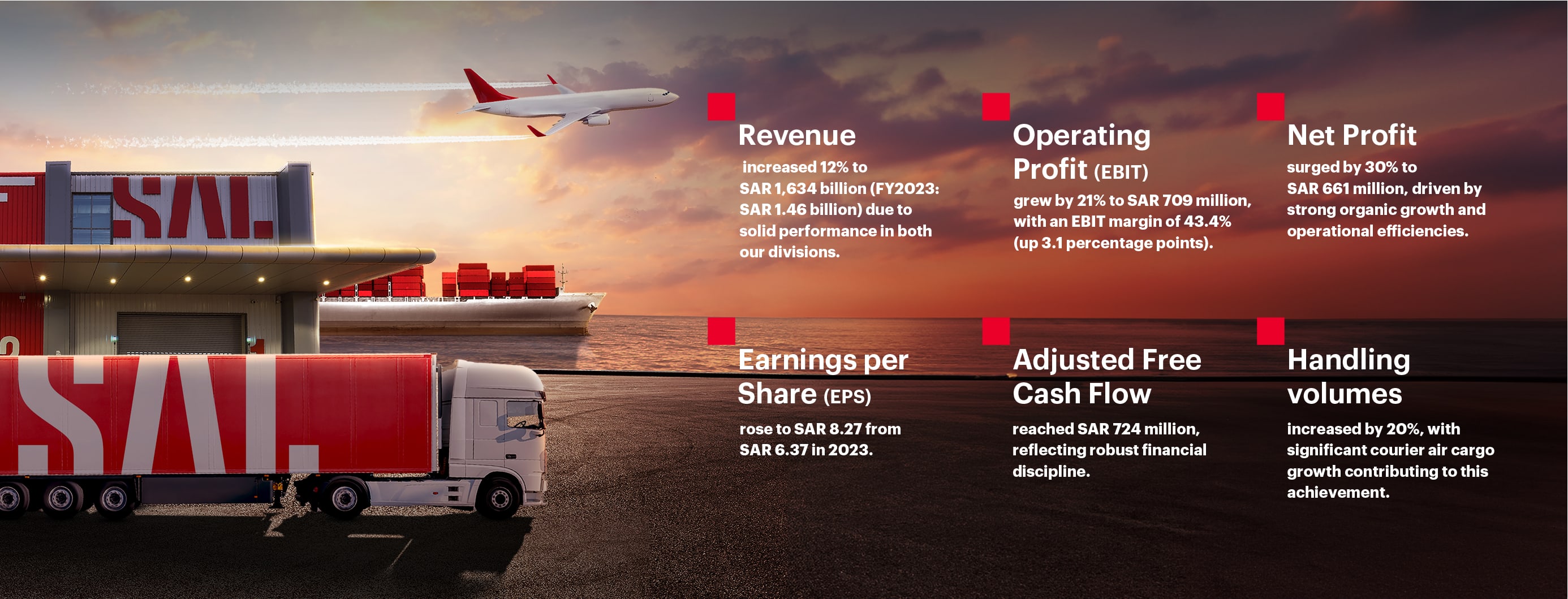 Despite market fluctuations, we achieved an impressive full-year operating profit (EBIT) of SAR 687 million, marking a notable 20% increase from the previous year’s SAR 570 million. Our EBIT margin rose to 50.4%, reflecting our steadfast commitment to operational excellence and efficiency compared to 2023. The Handling division’s annual results demonstrated a robust growth trajectory and is poised for continued expansion, while maintaining its dedication to further enhancing operational efficiencies.
